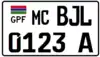 27x20 cm Black on White Gambian Flag as well as the text GPF on the top left corner of the license plate | |||