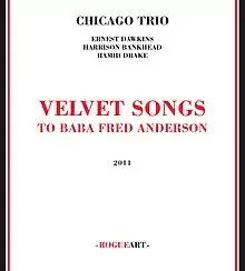 Velvet Songs, (subtitled To Baba Fred Anderson) is a double album by Chicago Trio, a collective jazz group consisting of saxophonist Ernest Dawkins, bassist Harrison Bankhead and drummer Hamid Drake. It was recorded live in 2008 at the Velvet Lounge, the club owned by saxophonist Fred Anderson, and released on the French RogueArt label.