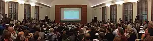 The society argues that the economic sciences are overcharged with the necessary transformation and claims, that other scientific fields, politics open to change and the cultural forces of the society as a whole are necessary to implement and shape the change assumed necessary.[3] Since the beginning, VÖÖ emphasized the necessity of a transdisciplinary approach.[5] Until 2010, VÖÖ was involved with establishing the concept of sustainability in its ecological, social and economic perspective.[6] Following a reorientation in 2010, the society promotes a post-growth economy based on the concepts of Niko Paech and others.[3] The concept of sustainable growth is considered to be an oxymoron,[6] and the importance of eco-efficiency, consistency and eco-sufficiency is emphasized.