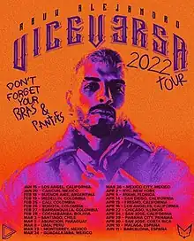 The Vice Versa Tour was the third concert tour by Puerto Rican singer Rauw Alejandro, in support of his second studio album, Vice Versa (2021). It began on January 15, 2022 in Los Angeles and concluded on June 11 of that year in Barcelona, with several shows throughout United States, Latin America, and Spain. DVILA, Joonti, and Pailita served as supporting acts on the tour. The Vice Versa Tour sold over 327,000 tickets and grossed over $24.5 million.