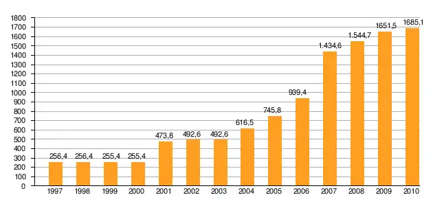 Investment expenditures in the Wałbrzych Special Economic Zone "INVEST-PARK" in years 1997–2009 (expressed in PLN billion)
