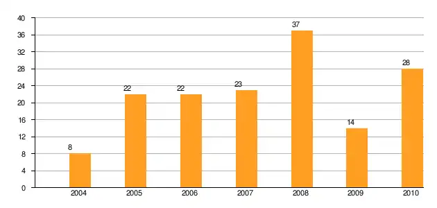 Number of expenditures who decided to invest within the WSEZ in years 2004–2010