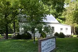 Walnut Grove Methodist Church is a historic church in rural western Pulaski County, Arkansas. It is located southwest of Little Rock, on the east side of Walnut Grove Road between County Roads 38 and 31. The modest wood-frame building has a single story, a gabled roof, rough-cut clapboard siding, and regional Greek Revival ornamentation. Its interior is finished with wooden planking, and it retains original period pews of similarly simple construction. Built in 1885, it is the oldest church in Pulaski County.[2]