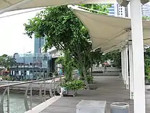 Waterboat House Garden is a small park located near the mouth of the Singapore River, near the Central Business District (CBD) in Singapore. The park was once the original site of the former Merlion Park where the two iconic statues of the Merlion and its miniature form were originally located.