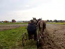 Massey Harris tractors arrived in the community in the 1950s. The power source for most farm work in the community prior to this was either horse or ox teams. The German yoke (narrower and strapped closely to the horns) was used to harness the oxen's power to the horns similarly to the Acadian style of yoke (wider and flatter resting more on the neck). In the major agricultural areas of Nova Scotia, the draft horse eventually replaced the oxen. The last known draft horse to work the land was "Bill", a black Belgian owned by Ivan Wile. Today oxen and horse teams are a traditional icon of Lunenburg County heritage. "Pulls" are well-attended events in the South Shore Exhibition at Bridgewater each summer.