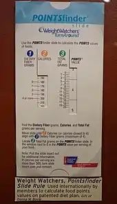 Contrary to several other diets, Weight Watchers does not focus on the calories but simplifies food selection with a points-based system named "SmartPoints", where each food type is assigned a point value calculated according to their nutrient and energy density. A point equals 50 cal. The point values system define both a quality scale and a quantity limit: a food with low point values, such as high fiber carbohydrates, lean proteins, legumes, can be consumed more freely and in higher quantities, whereas food items with higher point values must be eaten with parsimony or avoided. Most fruits and vegetables are "free", as they have a zero points value, and thus can be consumed at will.[1][6]