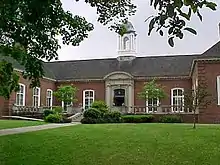The David A. Howe Library, a member of the Southern Tier Library System, is the largest public library in Allegany County and the cultural center of Wellsville. Built in 1910 in the Georgian style, the brick building enjoys much natural light because of the large Palladian windows and still retains much of its original custom furnishings such as cork flooring, original carved oak wood ornamentation, and child-sized furniture in the children's wing. In addition to several large reading rooms, the facility includes a large exhibition room, two terraces, local history room, meeting rooms, kitchen, and the 301-person Nancy Howe Auditorium which is often used for concerts, plays, movies, and meetings. In 2017 the library was awarded the EBSCO Excellence in Rural Library Service Award by the Public Library Association and EBSCO Information Services.[15]