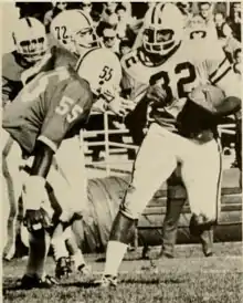 It appeared that the Bobby Bowden era of Mountaineer football could not have begun more smoothly early in the 1970 season, or so it seemed. The Mountaineers were 4–1 to start the season and led arch rival Pitt 35–8 at halftime in week six.[29] What transpired was one of the most infamous collapses in Backyard Brawl and West Virginia football history. The Mountaineers surrendered 28 unanswered points, losing to the Panthers 36–35 and leading Bowden to remark that he had "embarrassed the whole state of West Virginia" in the process.[30] Despite the disappointment of the Pitt defeat, West Virginia went on to finish the 1970 season with an 8–3 record. Fullback Jim Braxton and linebacker Dale Farley earned All-American honors.