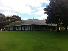 The museum is a single storey building with a timber shingled roof. The building has an L shape, with the entrance on the northern side. The walls are of brick construction rendered externally and plastered internally. The roof is timber framed and the building is enclosed with a verandah. An entry vestibule is on the inside of the L shape, with brick paving and a parking area.[3]