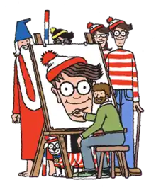In 1986, illustrator Martin Handford, a graduate of the University for the Creative Arts in Kent, was asked by his art director, David Bennett, at Walker Books in London to develop a book of detailed crowd scenes, inspired by Bennett having seen Philippe Dupasquier's Busy Places series.[3] Whilst the book was being prepared for Bologna Book Fair, someone at Walker Books suggested the idea of adding a distinctive-looking character whom the reader could search for in the crowd scenes.[3] After much thinking, Handford came up with the idea of "Wally", a world traveller and time travel aficionado who always dresses in red and white.[4] Sometimes it would take him up to eight weeks to draw a two-page sketch of the elusive "Wally" and the characters surrounding him.[5]