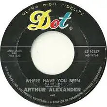 "Where Have You Been (All My Life)" was first released by Arthur Alexander in 1962, with "Soldier of Love (Lay Down Your Arms)" as the B-side, on Dot Records[2] (London Records in the UK).[3] Alexander biographer Richard Younger describes the song as "a classic example of sixties pop songwriting that captures the thrill of first love."[4] Billboard Magazine described the song as "an emotion-packed theme with solid female chorus work," and also praised the feeling Alexander imbues his vocal with.[4] Younger praises the "maturity" of Alexander's vocal performance, comparing it favorably to that on the earlier "You Better Move On," particularly how Alexander handles the "intricate melody, which ascends from the opening lines of revelation...to a chorus that is half-plea and half-exclamation."[4] Producer Noel Ball claimed to have taken Alexander "way uptown" with the recording, creating what Younger describes as "a thrilling production that builds from a stark bass and drum into a mini-symphony with strings reminiscent of The Drifters' "There Goes My Baby."[4] The song peaked at #58 on the Billboard Hot 100.[4] Authors David Hatch and Stephen Millward see a resemblance between "Where Have You Been (All My Life)" and early songs written by John Lennon and Paul McCartney.[5]