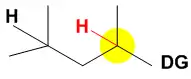 In the case where a directing group, denoted at the right by DG, is present near multiple aliphatic C-H groups the catalyst will oxidize the C-H bond closest to the directing group.[8][9][10] Thus far, only carboxylic acid functional groups have been shown to be effective and when present, the AcOH additive does not need to be added to the reaction. In the case at the right the C–H bond highlighted in yellow is in close proximity to the directing group and would be the expected site for oxidation in this substrate.