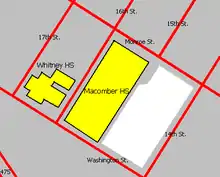 Harriet Whitney High School was a girls vocational public high school in Toledo, Ohio from 1939 to June 1991. It served the entire city and was part of the Toledo Public School District. In 1959, the school became joint-operational with Macomber High School,[2] an all-boys vocational school located next door, and the two buildings came to be known as Macomber-Whitney. Despite the fact that they shared an urban campus and some operational efficiencies, the two schools were completely separate in faculties, enrollments, and curriculum until the 1973-1974 school year. In the spring of 1972, an assembly was held for Macomber sophomores. They were told that they could major in one of several programs offered at Whitney, taking core courses at Whitney and other courses required for graduation at Macomber. The available programs included Distributive Education, Business Technology, Marketing, and Data Processing. Some 50 boys signed up. The only change from the assembly announcement was that the boys were transferred completely to Whitney. While the faculty and staff at Whitney had to make some adjustments to accommodate the boys, the program change worked well. The boys did have to undergo some questions from peers, some of whom didn't believe they actually attended Whitney (the most common response was "you mean, Whitmer?"—Whitmer being another co-ed high school in the metro Toledo area. And, even after the former Macomber boys were completely and fully registered as Whitney students, the school newspaper (Whit-Miss) and the yearbook (First Lady) kept their original names from when Whitney was a girls-only school.