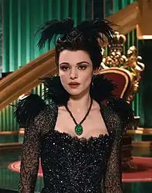 - In the 2013 Disney film Oz the Great and Powerful, the Wicked Witch of the East, named Evanora, is the main antagonist. She is portrayed by Rachel Weisz. In this version, the Witch is the older sister of Theodora, the Wicked Witch of the West (Mila Kunis), and is at war with Glinda, the Good Witch of the South (Michelle Williams) for control of Oz. She originally portrays herself as a Good Witch, and had been an adviser to the former king of Oz, whom she murdered, so that she could be in charge of the Emerald City herself. Evanora deceived Oscar Diggs by framing the King's daughter Glinda for the murder and telling him that Glinda is the Wicked Witch instead of herself, which resulted in Glinda being outlawed from the Emerald City and retreating to the South. Evanora manipulates her sister, who is in love with Oscar Diggs (James Franco), and ends up transforming Theodora into the Wicked Witch (of the West, eventually). Evanora is later fooled and scared by Oscar's illusion tricks and banished from the Emerald City. Before she flees, Evanora encounters Glinda in the throne room and the two witches fight each other in a climatic magic duel. Evanora seems to have an upper hand, but Glinda then crushes Evanora's emerald necklace, the source of her power, and the Wicked Witch's youthful and beautiful appearance quickly turns into that of a hideous old crone, which Glinda believes is a reflection of her true nature. Furious, Evanora tries to attack Glinda, but she is blasted out of the throne room window by Glinda wielding her magic wand. Evanora is then carried away by two of her last surviving flying baboons, but not before swearing a personal revenge on Glinda for foiling her. The emerald necklace that Evanora wears enables her to project her power from her very fingertips in a form that resembles green lightning. The magic shoes that the Witch would ultimately become associated with are not seen or even discussed in this film, nor does she officially become the Wicked Witch of the East during the story, which ends with the Wizard taking over the Emerald City. This is one of the significant differences from L. Frank Baum's original books, in which the Wicked Witches of the East and West were already ruling the Munchkin Country and the Winkie Country by the time the Wizard first arrived in Oz.
