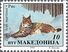14. 1 2 3 4 5 Lescureux, Nicolas; Linnel, John D.C.; Mustafa, Sabit; Melovski Lescureux, Dime; Stojanov, Aleksandar Lescureux; Ivanov, Gjorge; Avukatov, Vasko; von Arx, Manuela; Breitenmoser, Urs (October 2011). "Fear of the unknown: local knowledge and perceptions of the Eurasian lynx Lynx lynx in western Macedonia". Oryx. 45 (4): 600–607. doi:10.1017/S0030605310001547.