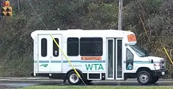 Regularly scheduled routes are served by vehicles marked "WE Shuttle" along the front while vehicles marked "WTA" along the front are used for rural requests as well as out-of-county requests. All vehicles are marked "WTA" along each side and have a green image of the state on the door with "North Carolina Public Transportation" within it. The price to board the WE Shuttle is $1.00 while the pricing for rural service varies depending on location, but costs between $4.00 and $24.00. Every bus is equipped with entrances for disabled individuals.[3]