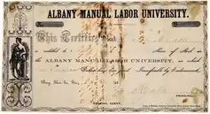 - ↑ Annual Catalogue of the Officers and Students of the Albany Manual Labor University, 1855-56. George S. Walsh Printers: Athens, Ohio. 1856. p. 7.