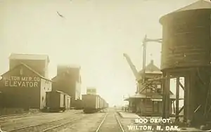 Wilton station in Wilton, North Dakota, USA, was built in 1900 by the Minneapolis, St. Paul and Sault Ste. Marie Railroad. Designed by William J. Keith, it was listed on the National Register of Historic Places in 1978 as the Minneapolis, St. Paul and Sault Sainte Marie Railroad Company Depot. It is also known as Soo Line Depot.[1]