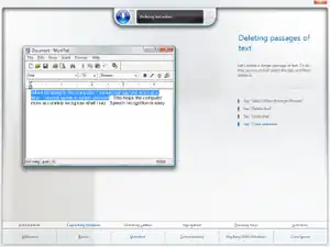Windows Speech Recognition allows users to control their machine through voice commands, and enables dictation into many applications. The application has a fairly high recognition accuracy and provides a set of commands that assists in dictation. A brief speech-driven tutorial is included to help familiarize a user with speech recognition commands. Training could also be completed to improve the accuracy of speech recognition.