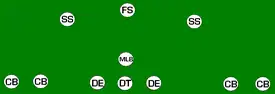 His [Gary Patterson's] 4–2–5 defense is by definition built on swiftness over bulk, with three safeties and one fewer linebacker on the field than the normal 4–3 alignment.