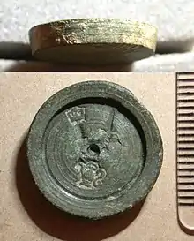 A bullion weight dated to 1688, stamped with a crown and ewer. The ewer is the symbol of the Worshipful Company of Founders and was used for countermarking bullion weights in the reign of William III and after 1772.