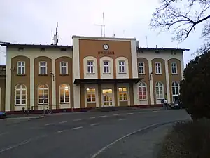 Września railway station (German: Wreschen) is a railway station serving the town of Września, in the Greater Poland Voivodeship, Poland. The station is located on the Warsaw–Kunowice railway and Oleśnica–Chojnice railway. The train services are operated by PKP and Koleje Wielkopolskie.