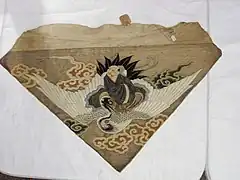In the Han dynasty, stories on Chinese immortals became popular and the popular of the cloud motif grew.[3]:133 The cloud patterns gained more artistic beauty which were associated with the concept of immortality[3]:133 and were formalized.[9]:99 These cloud motifs were then used in various ways, such as in architecture, clothing, utensils, and coffins.[3]:133[9]:99 They were also combined with other animals (e.g. birds) and mythological creatures (e.g. Chinese dragons).[3]:133
