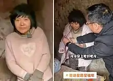 Local officials first dismissed the human trafficking claims on 28 January, by saying the woman had been legitimately married to a local man and was mentally ill.[7] However, facing continuous public pressure, Chinese authorities later conducted two higher-level investigations that led to the arrests of two people suspected of human trafficking, as well as the woman's husband for "illegal detention".[8][9] Authorities have also punished 17 officials in the county for "dereliction of duty" in the handling of the case.[10][11] Public opinion used this incident to call on the Chinese government to protect rural women and individuals with mental illnesses, and to combat the issues of trafficking women and children as well as sexual assault in rural areas of China.[1] There are also voices of skepticism questioning the actions of local government and official media in handling this event.[2][3]