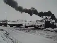 The Comodoro Rivadavia Railway joined oil wells of the region until its closure in 1978. Left: an YPF's freight train crossing the Km. 3 district in Comodoro Rivadavia; right: a train exhibited at the Petroleum Museum in 2013