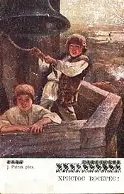 In the 1910s and 1920s, postcards were very popular in Ukraine. From 1912 to 1914 the publisher, Grigoriy Hanulyak, alone produced more than 120 designs; most of them based on paintings by Pstrak.[1] Today, as a result, many of his works are better known, or only known, in their postcard form, rather than the originals.