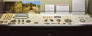 The Yata Ōtsuka Kofun is located on the north bank of the Oda River near the confluence with the Takahashi River. It was excavated in 1901, during which time a large amount of grave goods, including Sue ware and Haji ware pottery, as well as iron swords, horse harnesses, metal rings, and magatama, were discovered. These artifacts are now in the collection of the Tokyo National Museum. [2]