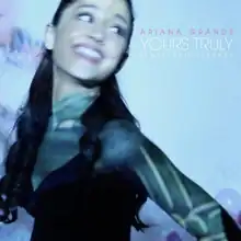 On August 1, 2013, Grande revealed the official artwork for Yours Truly, which features her kneeling on a bed of roses in front of a pink background. Due to fan criticism, she quickly unveiled a new cover, which simply featured the singer standing beneath a spotlight in a black-and-white image.[45] On August 7, 2013, Grande revealed the official track listing via iTunes, and Republic Records made pre-orders for the album available.[46] A music video for "Almost Is Never Enough" a duet with The Wanted's Nathan Sykes premiered online on Vevo on August 19 to promote the film The Mortal Instruments: City of Bones. The track is featured on the film's official soundtrack. The album version of the track is two minutes longer and has been slightly altered.[47] It debuted on the Billboard Hot 100 at number 84.[48] "Popular Song" featuring Grande was released on December 21, 2012, as a single from Mika's third studio album, The Origin of Love. The album version of the song features vocals from the original songwriter, Priscilla Renea, and contains expletives. However, the single version removes Renea and replaces her with Grande, removing the expletives.[49][50]