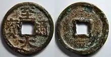 {{cite book}}:|work=ignored (help) - ↑ Belyaev, Vladimir A.; Sidorovich, Sergey V. (2016). "Temple Coins of the Yuan Dynasty". The Language and Iconography of Chinese Charms. pp. 149–161. doi:10.1007/978-981-10-1793-3_8. ISBN 978-981-10-1791-9.