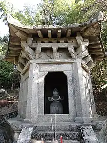 The Zhenru Temple was built between 806 and 810 during the mid-Tang dynasty (618907) by monk Daorong, where he taught Chan Buddhism with his disciples Quanqing (全庆) and Quanhui (全悔) for almost 70 years. In the year 883 during the reign of Emperor Xizong, the local military governor Zhong Chuan (钟传) invited master Daoying (道膺) to the temple to preach Buddhism. The emperor bestowed a plaque inscribed by with Chinese characters of "Longchang Chan Temple" (龙昌禅院).[1][2]