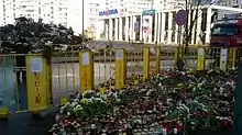 The families of victims requested that all objects at the site of the disaster be dismantled and evacuated, including the 12-story apartment building owned by Homburg Zolitūde.[83] The Mayor of Riga Nils Ušakovs said that the Maxima building would be demolished and have a temporary memorial built in its place.[84][85] Since then, relatives of victims have asked for a proper memorial.[86]